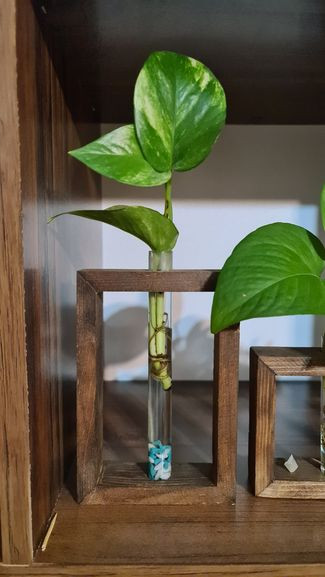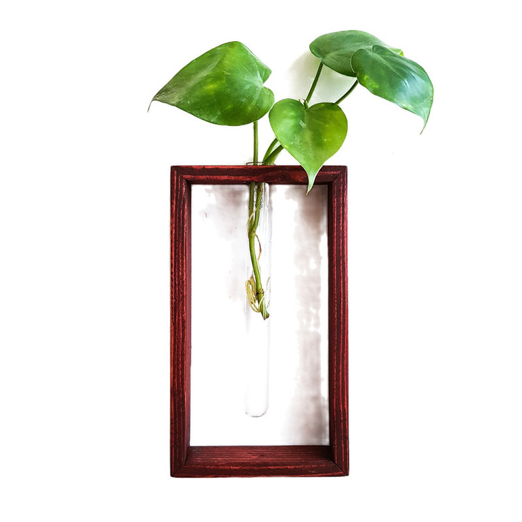 گلدان دکوری چوبی با شیشه جای گل هدیه