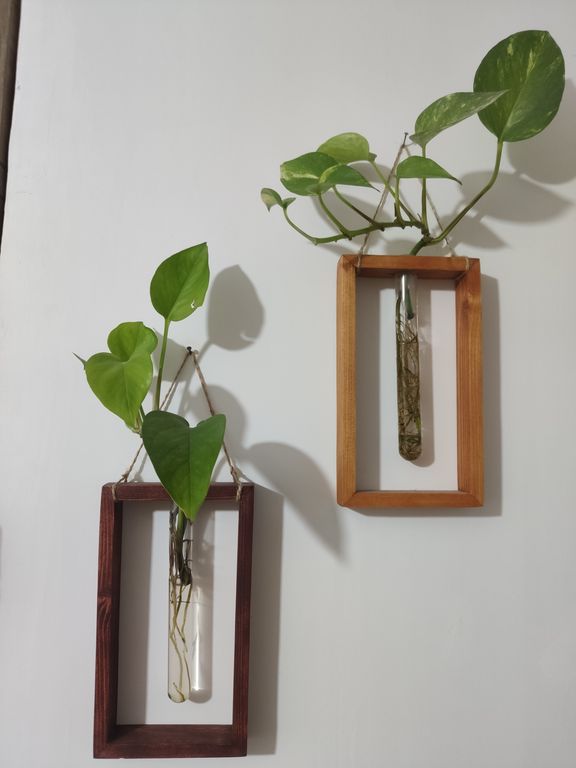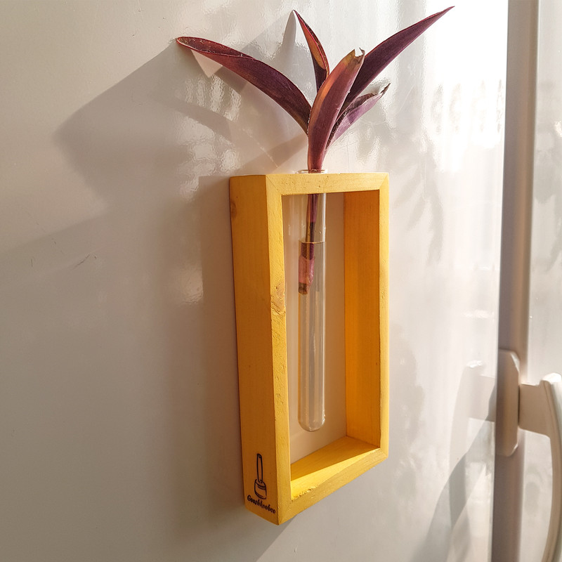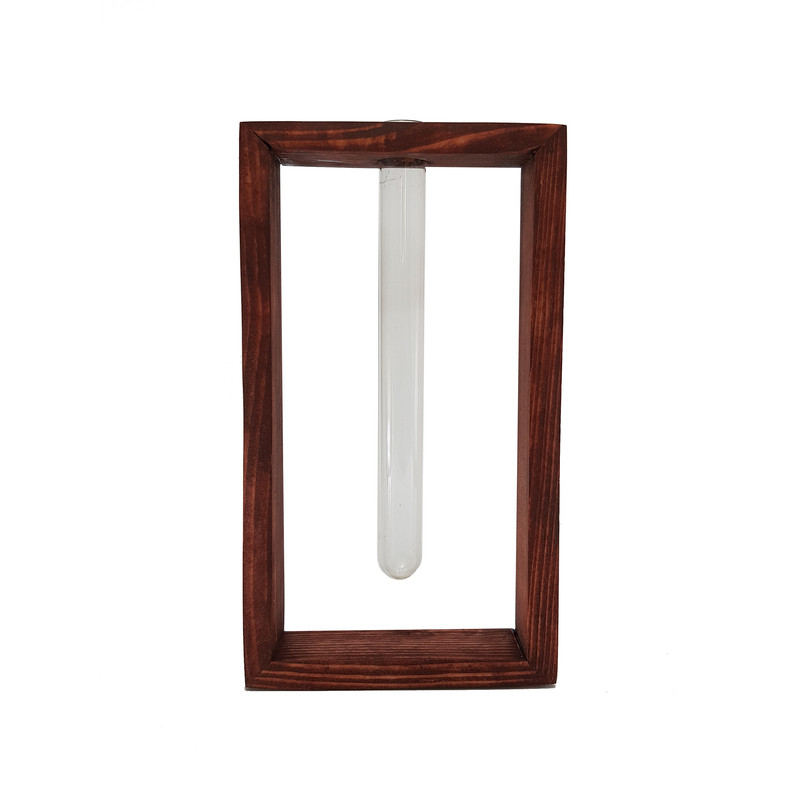 گلدان دکوری چوبی با شیشه جای گل هدیه