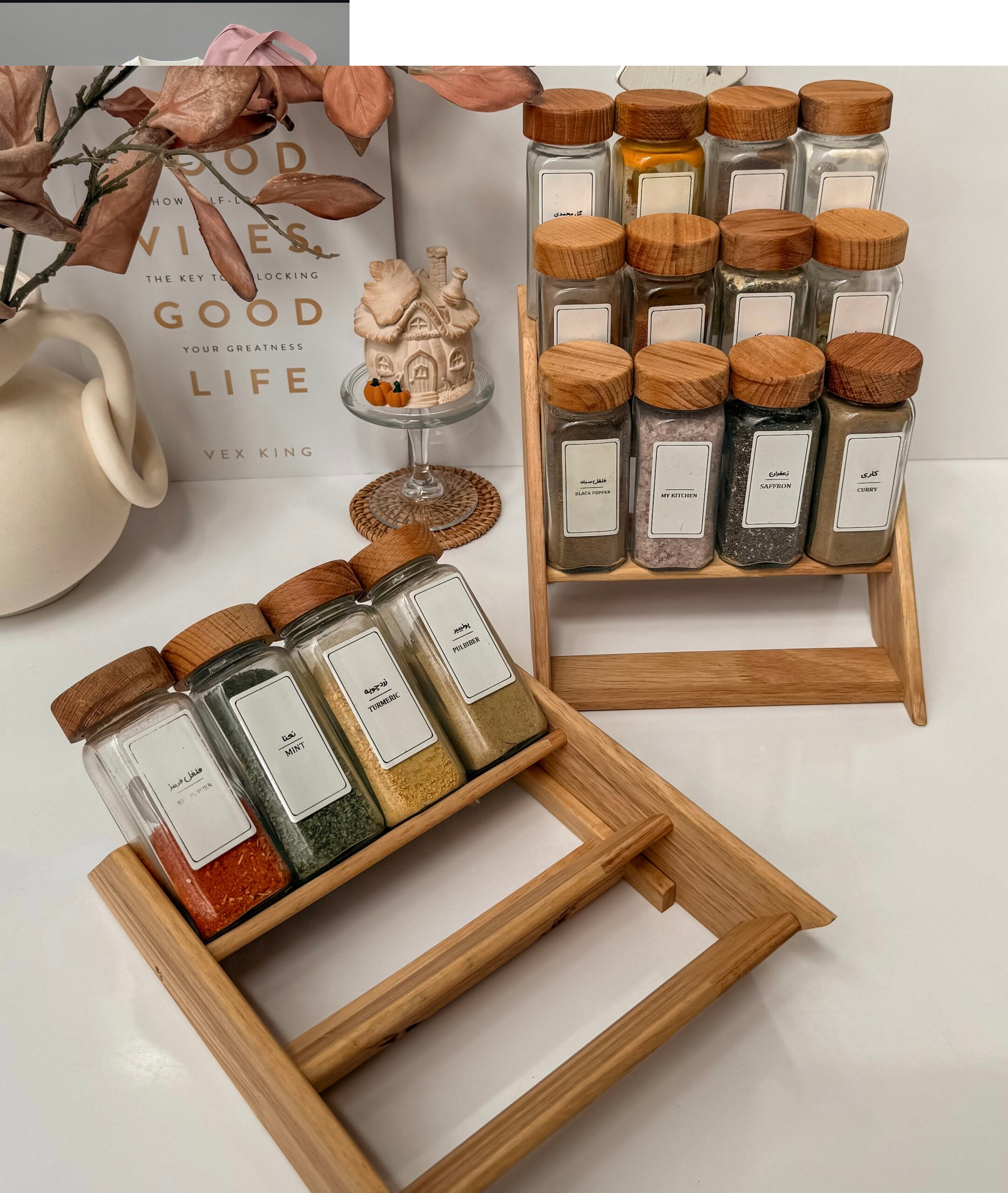 استند چوبی مناسب روی کابینت و کنار گاز