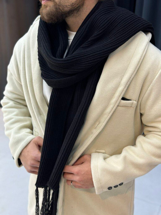 برای تکمیل استایل، شال گردن بافت مردانه 2 متری در کنار پیراهن قرار گرفته است. این شال علاوه بر ایجاد لایهای اضافی برای گرما، نقش مهمی در جذابیت ظاهری دارد. طول و عرض استاندارد آن باعث میشود بتوانید بهراحتی آن را به شیوههای مختلف ببندید و با هر تیپ اسپرت یا نیمهرسمی هماهنگ کنید. بافت منظم و مقاومت بالا در برابر کشش، تضمین میکند که به مرور زمان فرم اولیهاش را حفظ کند.