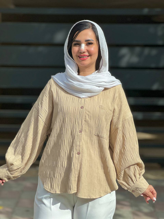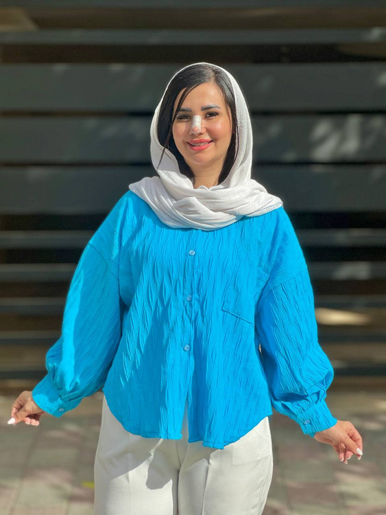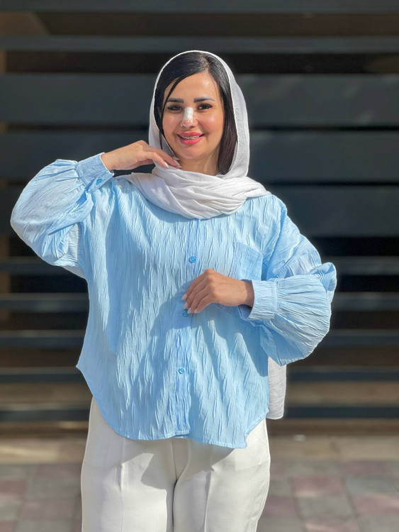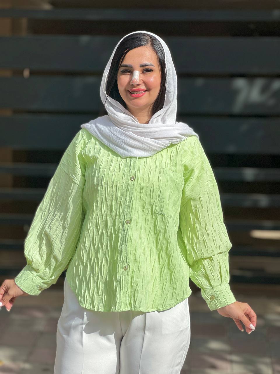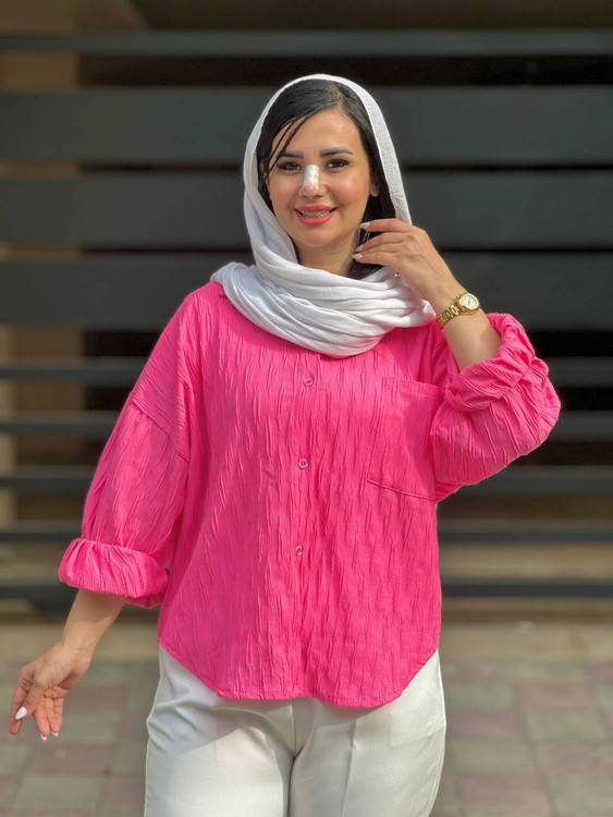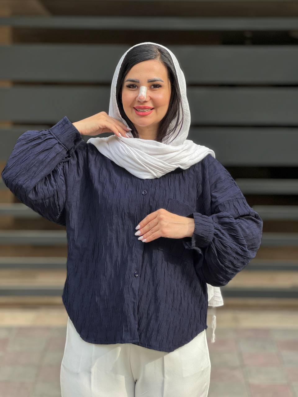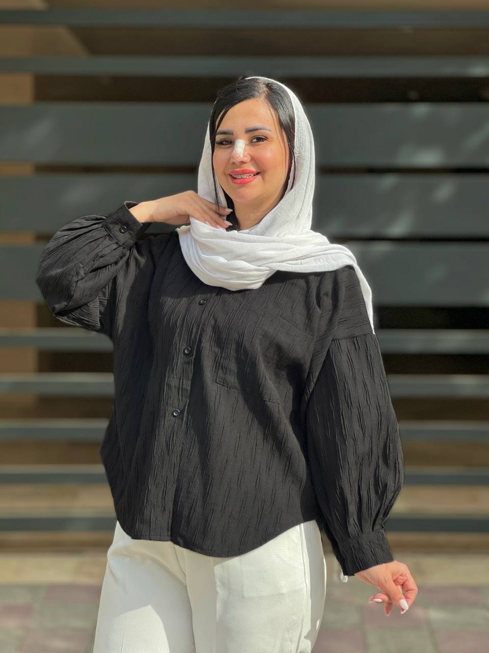 نکات مهم: جنس : ژاکارد پفکی کیفیت دوخت و پارچه عالی فری سایز (مناسب سایز ۳۶ الی ۴۴) قد شومیز : ۶۶ دور سینه : ۱۲۴ دور باسن : ۱۱۸ قد آستین از جای برش : ۴۰