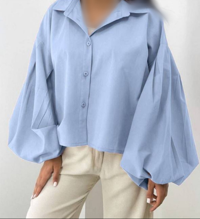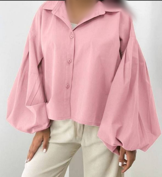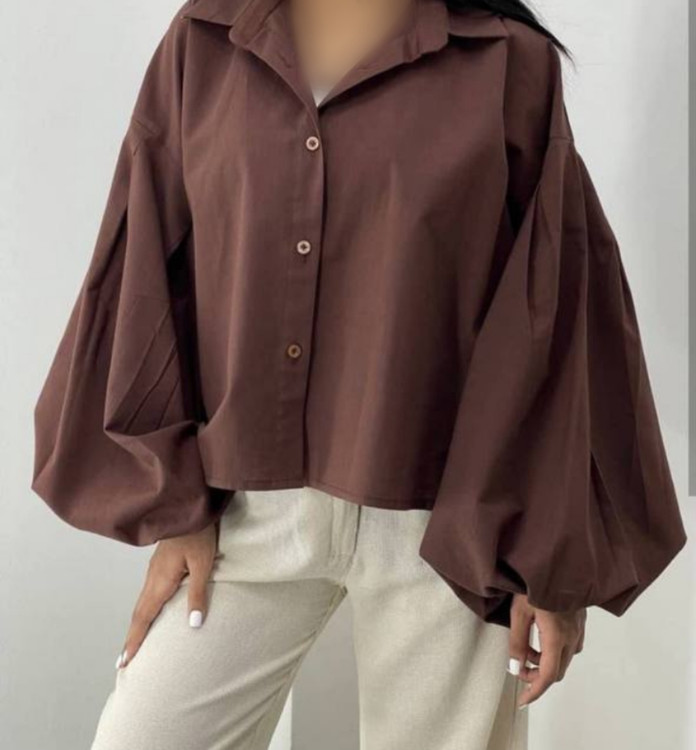 شومیز بهاره آستین پفی فری سایز جنس داکرون